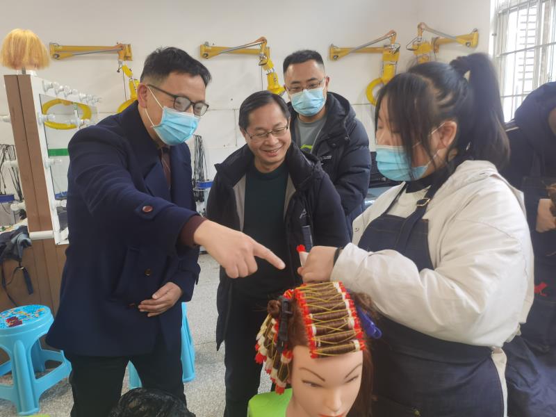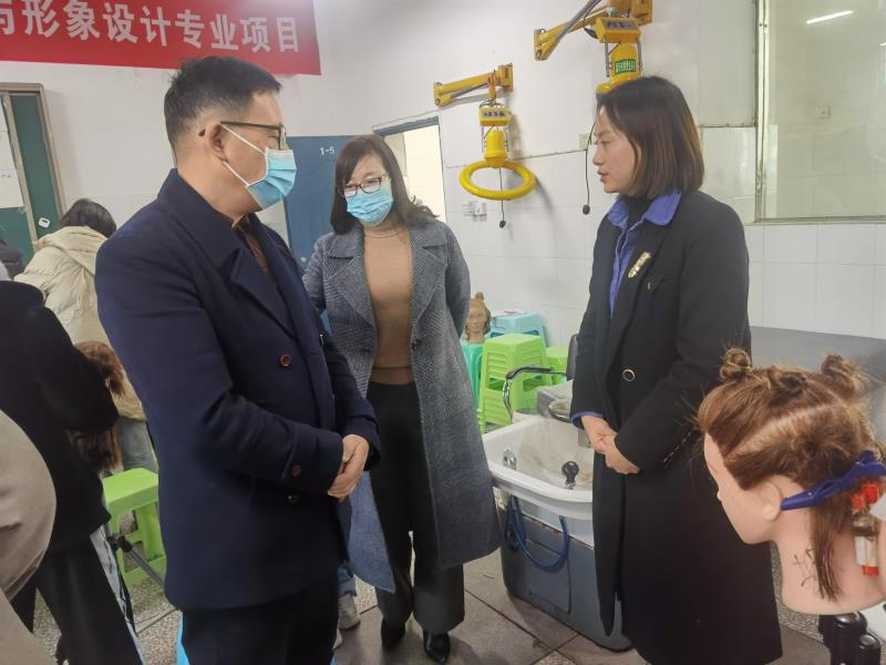 督导组采取随机选班推门听课的方式,对学校基础课、实训课课堂教学进行常态化检查指导。他们认真观摩了数学课堂中学生的听课状态、课堂练习情况、教师备课和教学组织情况等,全程观摩美发与形象设计实训课堂,对学生实训教学方式、日常训练安排等进行了详细了解。
