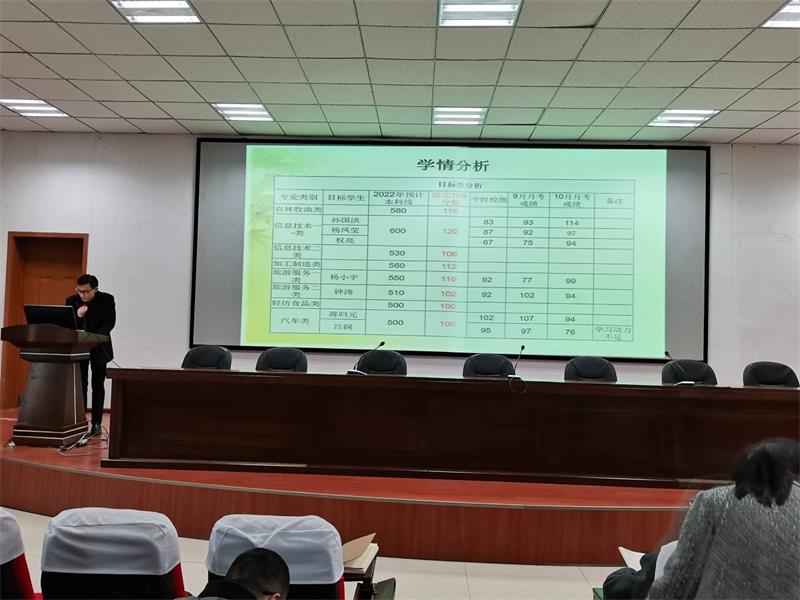 会上,专业负责人、学科教师、班主任代表分别围绕专业特点、学科知识结构、班级管理、学情及目标确定方面做了阐述和经验分享。教务科运用数据分析方法从纵向的时间维度、横向的个体发展维度、高考政策变化趋势等方面,对当前学生的学习状态和阶段性效果以及后期发展趋势予以分析,并提出了适配的复习策略建议。会议认为,一要精细教学,夯实过程,强化对优生和边缘生的培养;二要精细管理,用心用情,抓实“成长”“协作”“务实”“联动”四项措施;三要认清形势,把握好几方面关系,优化资源配置,全力抓好保障服务。