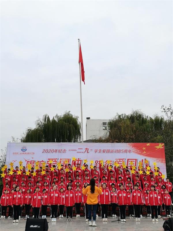 1935年12月9日,满腔爱国情怀的北平大学生掀起了全国抗日救亡运动的新高潮。为纪念一 二 · 九运动85周年,广元职高师生怀着对先辈们深切的怀念、对祖国明天的美好祝福,于12月10日下午,在学校运动场举行了合唱比赛。