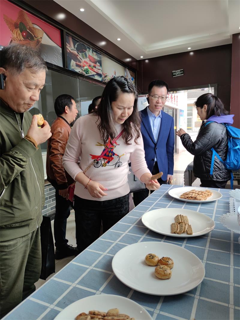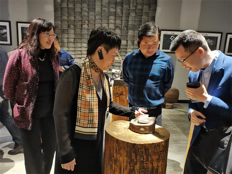 在参观学校白花石刻研发中心时,考察团一行仔细端详陈列的石刻作品,现场观看了制作过程,并与白花石刻工艺大师谢志才和学徒亲切交流,咨询材料选取、制作工艺、市场前景等问题,对非遗文化与技能传承饶有兴趣,最后考察团现场购买了成品挂件留作纪念。