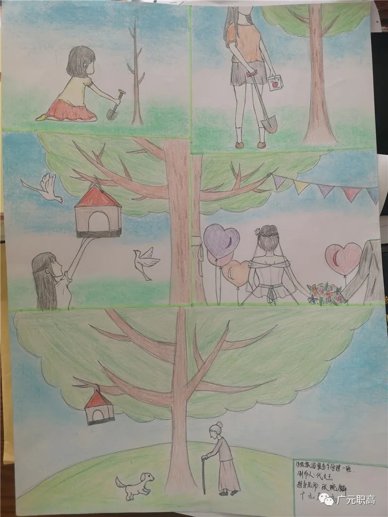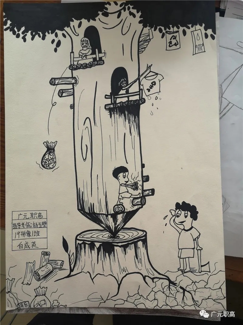 按照广元市教育局要求,广元职高开展了一系列以“美丽中国,我是行动者”为主题的“6.5”环境日主题教育系列活动。在市“文轩杯.我与森林共呼吸”环境漫画征集比赛中,学校何林同学获市中学组一等奖,白成英同学获市中学组二等奖,杨凤莹和代文玉两位同学获市中学组三等奖,18级服装班答欣老师获得优秀指导教师称号。大家用画笔讲述“我”与森林的故事,用漫画诠释保护环境的知识,展现了人与自然和谐共生的生动画面。
