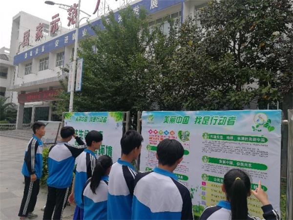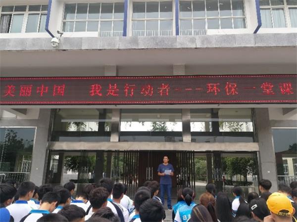 6月4日10:00,政教科、总务科组织2018级全体同学,在学校飞翔广场开展了题为“美丽中国·我是行动者”的环保一堂课,政教科蒙旭主任做主题宣讲,宣讲结束后,同学们来到展板前驻足观看。