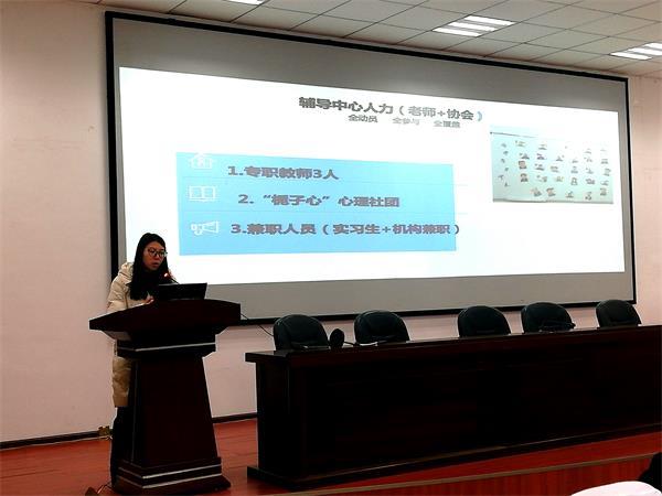 校心理教师刘彤彤,从浙江丽水职高心理辅导中心简介、中心现开展的系列工作,以及我校优劣势分析和后期工作规划四个方面进行了心理辅导方面的学习汇报。
