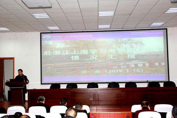 随后副校长张毅就赴浙江上海学习考察职业教育情况做了汇报。围绕浙江德清职业中专、上海德国巴伐利亚职业继续教育中心、上海德稻教育集团、浙江长兴技师学院四站,从学习考察目的、内容,外地职业教育先进做法,收获与成果,下一步工作设想等方面和大家进行了交流分享。他指出,从校园管理、文化建设、德育实践、“双元制”职教体系,到大师名师追求卓越的精神,都有值得学习借鉴的地方,我们不可照搬模式,但应开放思想观念,不断反思总结。