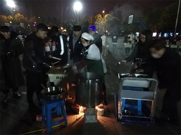 活动开始,身着民族服装的主持人走上舞台,政教科科长蒙旭首先代表学校向所有彝区同学表示节日的祝贺,并请同学们向远在凉山的家长表达敬意和问候,祝愿同学们学习进步、身体健康。随后,彝区学生载歌载舞,民族舞蹈、独唱、合唱,把活动推向高潮。同时,表演场地中心的炖羊肉热气腾腾,学生干部们将一碗碗肉汤送到在场的每位学生手中,浓浓的“年味”顿时散发出来。工作组马史清组长、李志权老师接受学生的邀请,走上舞台,激情放歌,赢得了在场师生的掌声和欢呼声。表演接近尾声,在场全体彝区学生和学校干部、老师们一道, 共同挑起了彝族新年的“踢踏舞”,再一次把活动推向高潮。