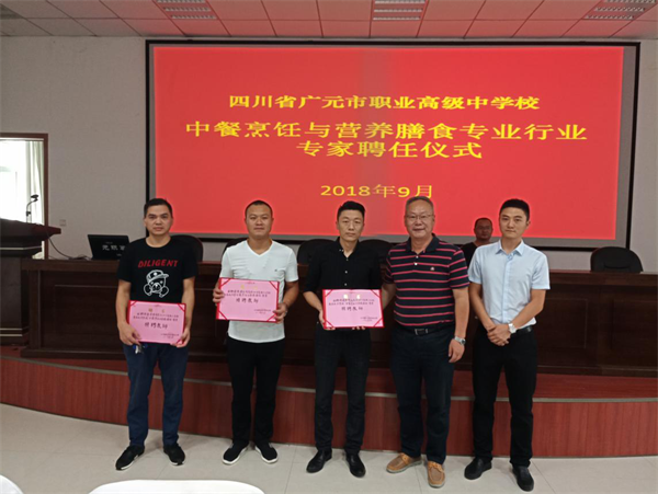 首先,烹饪专业负责人王菲老师介绍了聘请行业专家到校任教的重要意义,然后对三位专家分别进行了介绍:李泽全,男,42岁,四川资阳人,现任广元市新源老菜馆总经理,从厨20余年多次荣获全国烹饪大赛金奖,精通食品雕刻和传统菜肴制作;兰华双,男,36岁,四川绵阳人,现任广元市水韵鹭岛酒楼总经理,从厨20余年,勤于学习不断进取,擅长创新川菜和分子美食料理;韦清华,42岁,重庆南川人,现任广元市丽枫酒店面点主管,精通白案尤其擅长各类酥点制作,多次参加省市烹饪比赛并屡获殊荣。