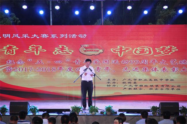 5月2日晚,我校篮球场上流光溢彩,灯火辉煌。为纪念“五·四”青年爱国运动99周年,号召师生弘扬五四精神,肩负时代使命,砥砺前行,市职高举行了以“青年志·中国梦”为主题的大型文艺汇演暨2017—2018年度优秀青年、先进集体表彰大会。团市委、市教育局、精神文明办、教育集团兄弟学校等相关领导出席活动,与职高的全体师生共享了一场视听盛宴。