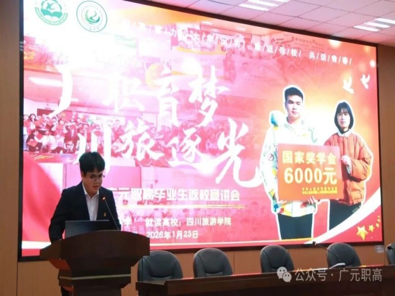 1月23日,广元职高举办了“青春对话:学长的成长故事汇”优秀毕业生返校交流活动。活动邀请了2020级中餐烹饪专业优秀毕业生、现四川旅游学院烹饪与食品科学工程学院2023级学生杨宇返校分享。全体学生会干部及烹饪专业2025级全体学生共计500余人参与交流。